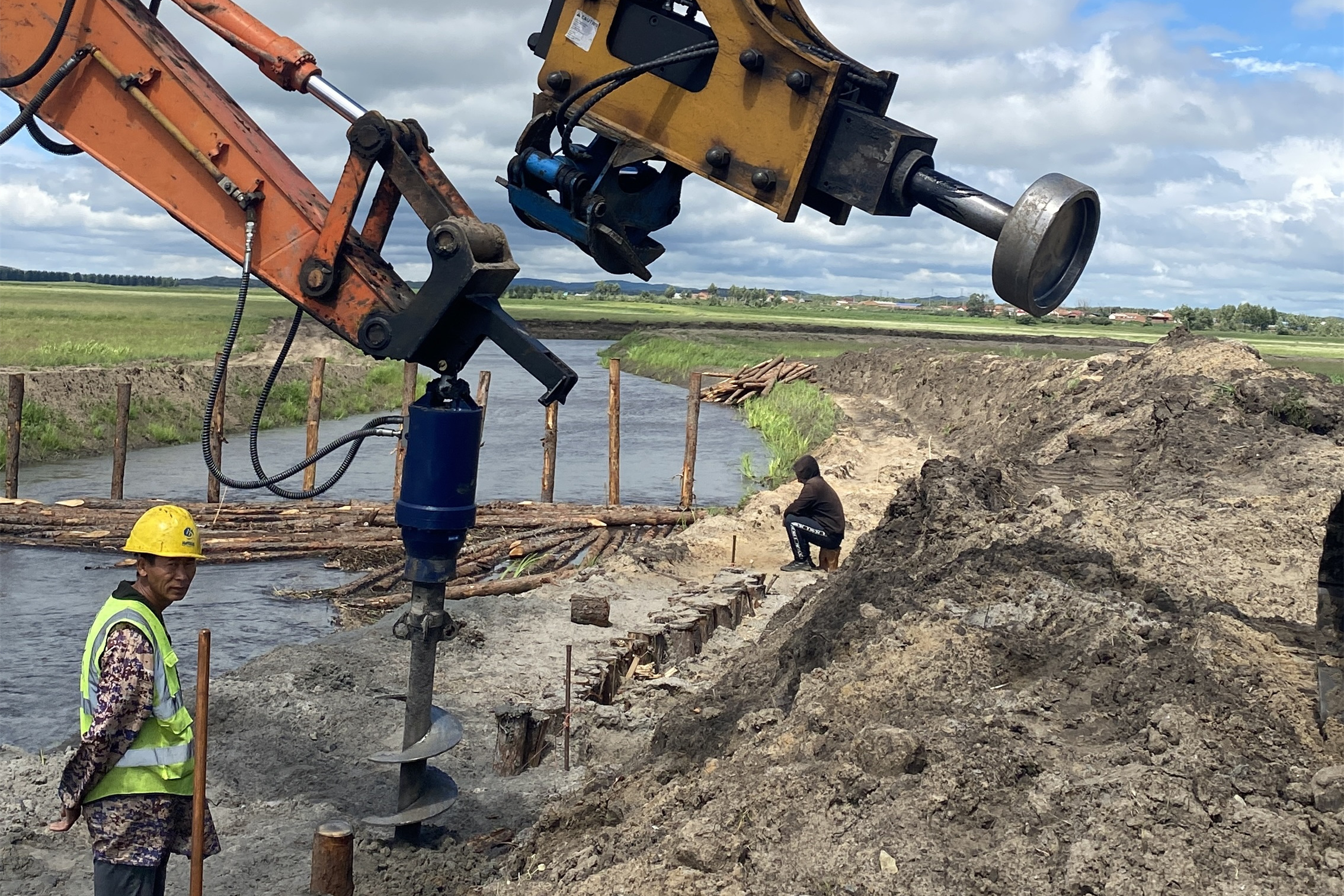 查看詳情改造魚塘,堤壩用木樁加固為了穩(wěn)定壩的基礎(chǔ),兩邊用松木樁固定;相對來說木樁成本較低。